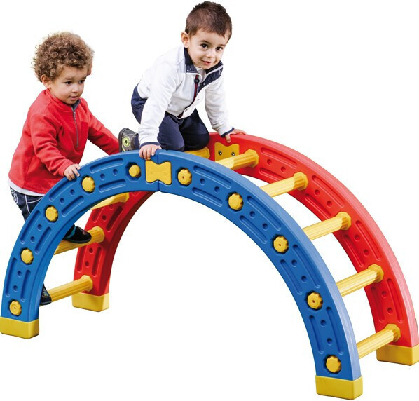 De bijgeleverde brug maakt het mogelijk om het wiel stevig te verbinden met andere speelmodules, zoals een klimdriehoek. Het Balancierwiel wordt ongemonteerd geleverd, inclusief het benodigde gereedschap.