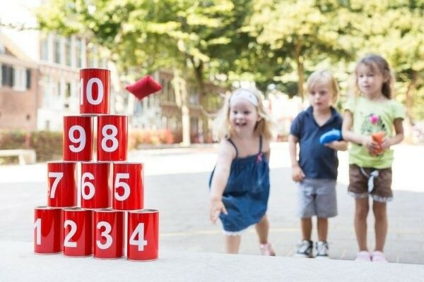 - Inclusief 10 metalen blikjes en 3 werpzakken