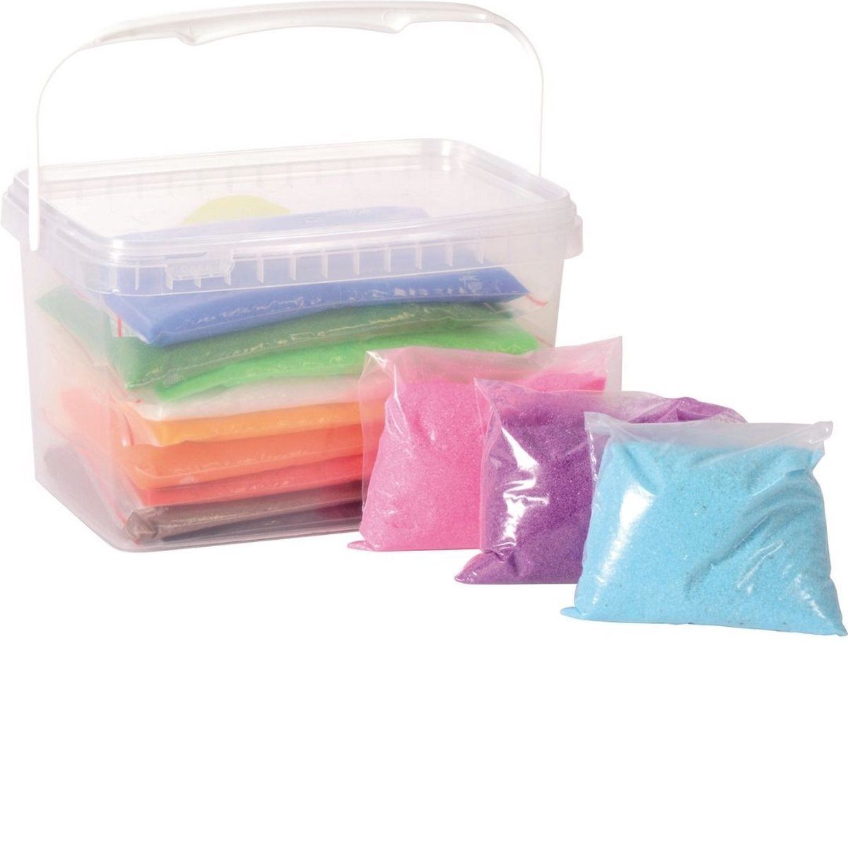 12 kleuren dekozand (elk 200 g) in een handige kunststof doos