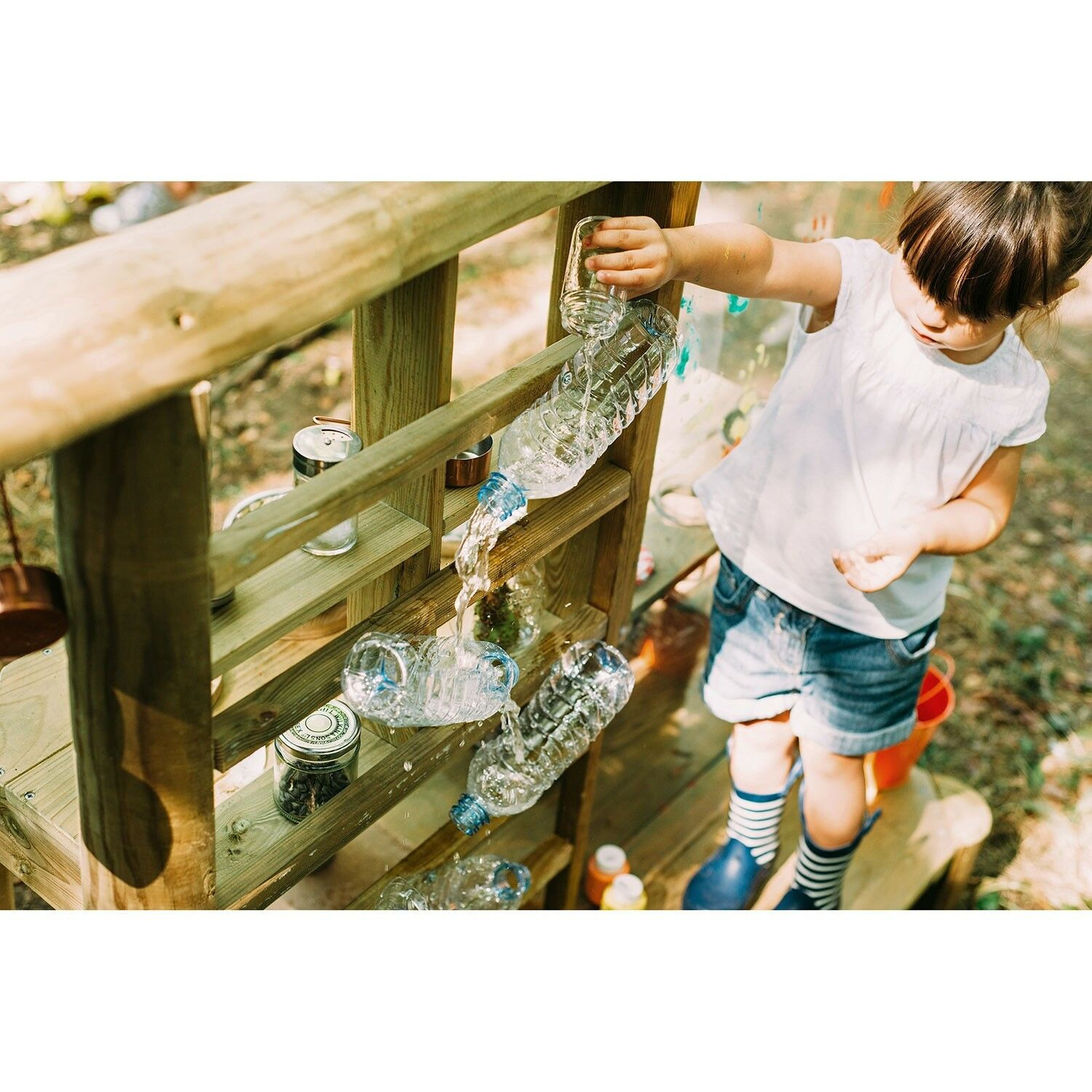 Stimuleer de creativiteit en het aanpassingsvermogen van uw kind terwijl ze genieten van urenlang speelplezier in de buitenlucht. Deze duurzame en veelzijdige speelkeuken biedt een geweldige combinatie van leren, ontdekken en spelen in de natuur. Perfect voor jonge natuurliefhebbers en toekomstige chef-koks!