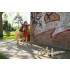 Plaats de 12 paaltjes bij elkaar, gooi met de stok en probeer precies 50 punten te scoren.