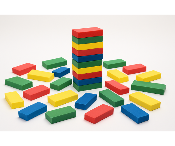 Laat kinderen bouwen, stapelen en spelen met deze kleurrijke foam bouwblokken! De blokken zijn gemaakt van stevig maar zacht Plastazote foam, waardoor ze volledig veilig zijn voor kleine kinderhanden. Extra leuk: de blokken drijven in water, waardoor ze ook in bad, zwembad of watertafel gebruikt kunnen worden. Perfect voor fantasierijk spel, motorische ontwikkeling en sensorische stimulatie.