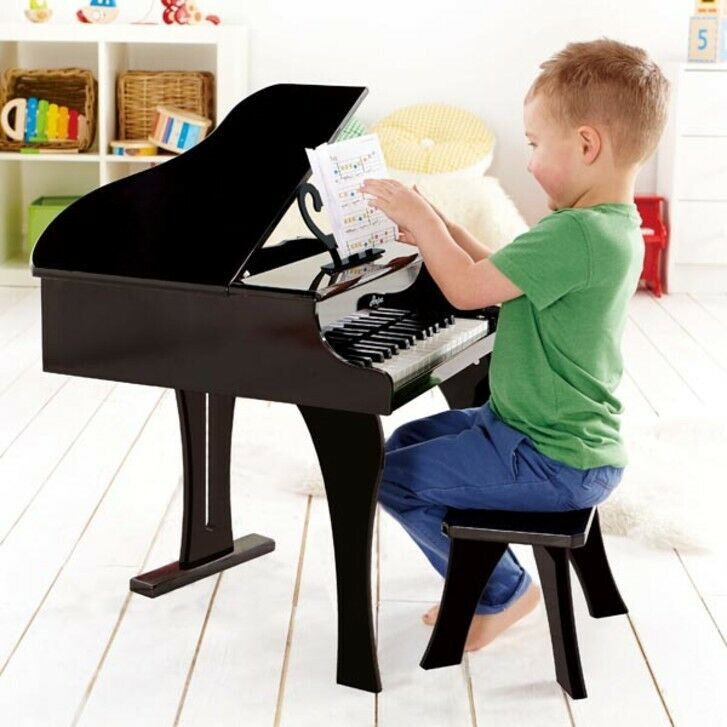 Laat jonge muziekmakers de magie van muziek ontdekken met de Happy Grand Piano - Zwart Hape! Deze stijlvolle houten vleugelpiano met 30 toetsen is speciaal ontworpen voor kleine handen, zodat kinderen spelenderwijs hun eerste stappen in de muziek kunnen zetten. Perfect voor thuisgebruik, kinderdagverblijven en scholen, deze piano combineert esthetiek met educatief plezier.