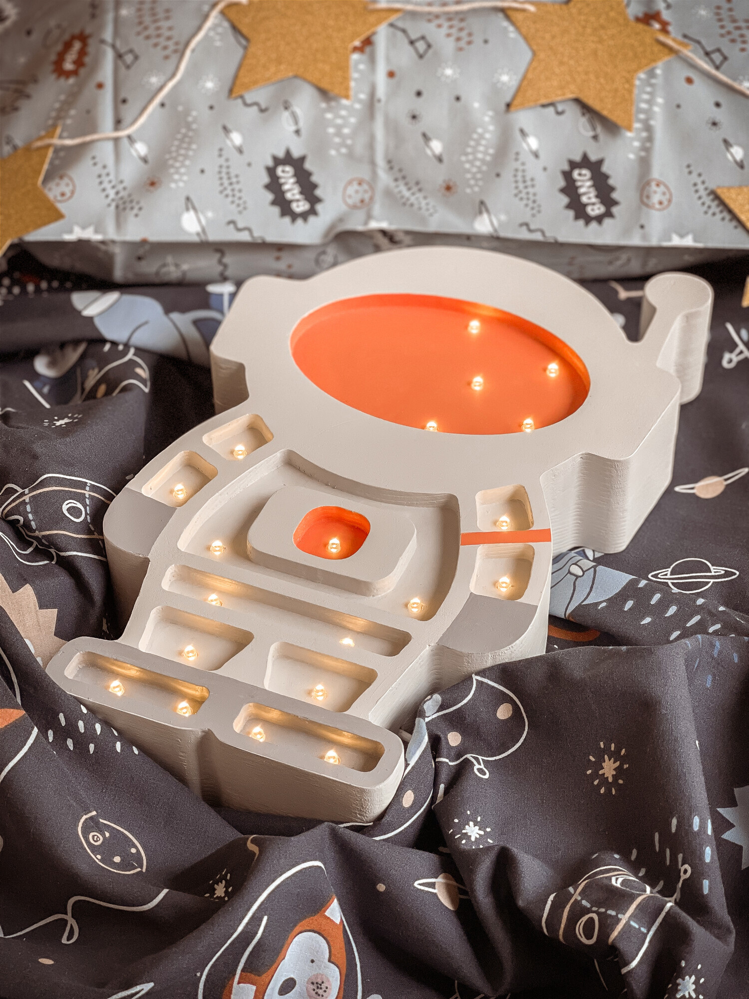 Ontdek deze prachtige handgemaakte houten nachtlamp met LED-verlichting, perfect voor elke kinderkamer. De lamp combineert verfijning met inspirerende vormen en past naadloos in verschillende hedendaagse interieurstijlen, om elke ruimte precies de juiste dosis charme te geven.