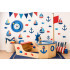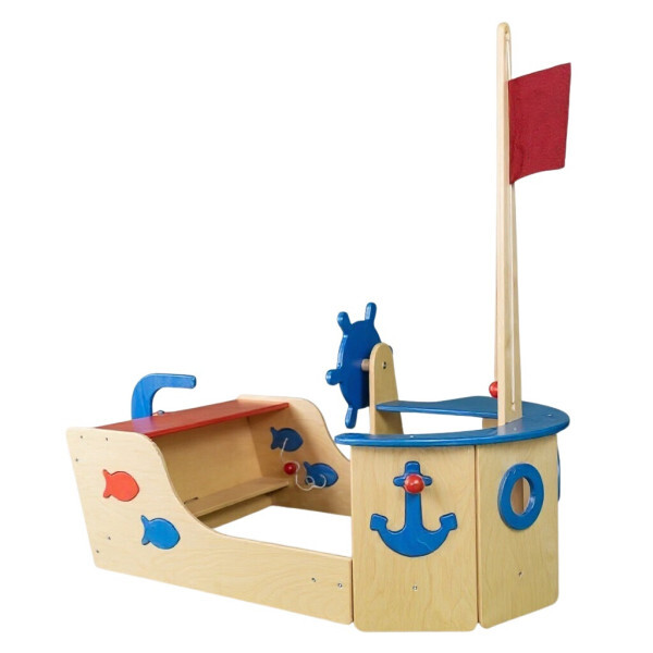 De vlag kan met een stevig touw omhoog en omlaag worden bewogen, en met een beetje handigheid kunnen ze het anker in de zijwand plaatsen. Vier houten vissen nodigen uit tot vissen en zijn veilig bevestigd met touwen zodat ze niet verloren gaan. Perfect voor scholen, kinderopvangcentra en sensorische ruimtes die fantasierijk spel stimuleren.