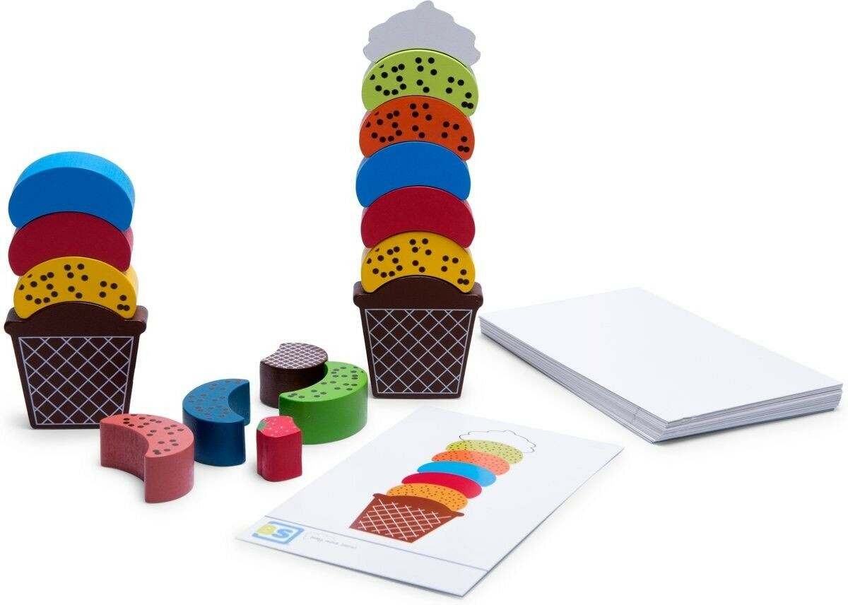 Pak snel een kaart en stapel alle verschillende smaken op elkaar. Wie het snelst zijn ijsje kan maken, maar hem niet laat omvallen, wint het spel!