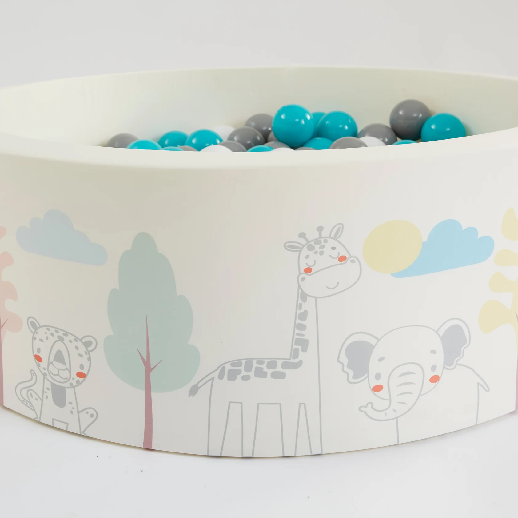 Eenvoudig Onderhoud: Het ballenbad wordt geleverd met 200 kleurrijke polypropyleen ballen (wit, turquoise en grijs) met een diameter van 7 cm. De afneembare buitenhoes is machinewasbaar, waardoor het ballenbad altijd schoon en fris blijft.