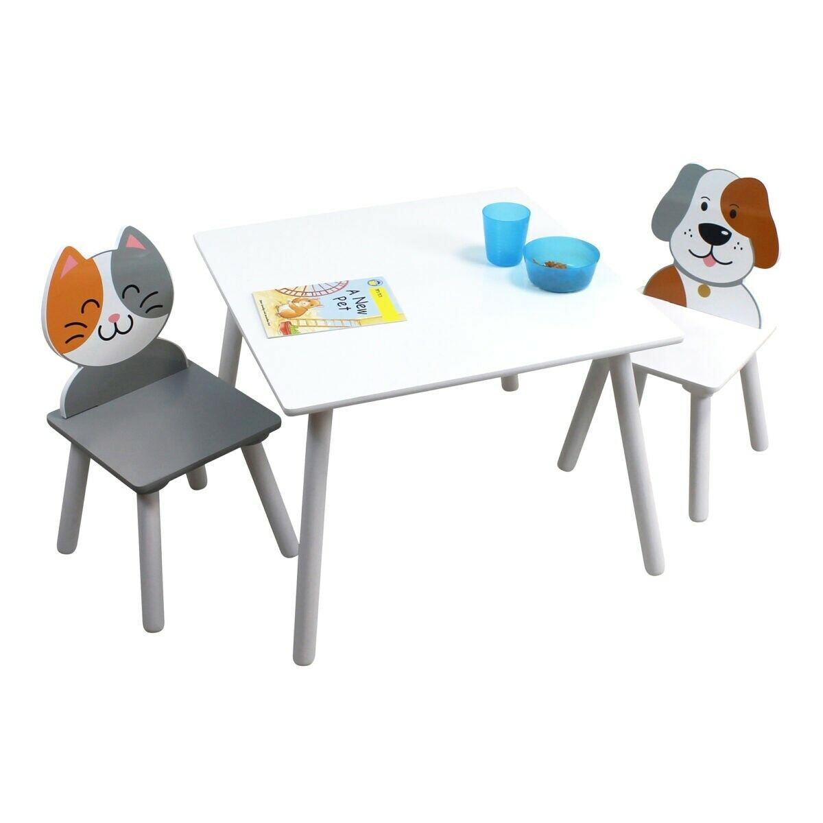Deze schattige en stevige tafel- en stoelset is geweldig voor uw kleintjes. Met de schattige kattenhonddetails is deze set 'purrfect' voor eten, spelen, tekenen of huiswerk maken. Het tafelblad is gelakt om bescherming te bieden tegen elk 'ruff'-spel. Het eenvoudige maar unieke ontwerp past in elk huis, slaapkamer, speelkamer of klaslokaal.