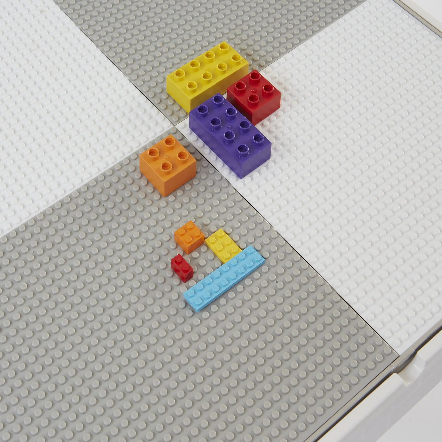 - Constructietafelblad: Compatibel met toonaangevende bouwsteenmerken zoals LEGO®, Duplo® en Megabloks®. Perfect voor kleine bouwmeesters!