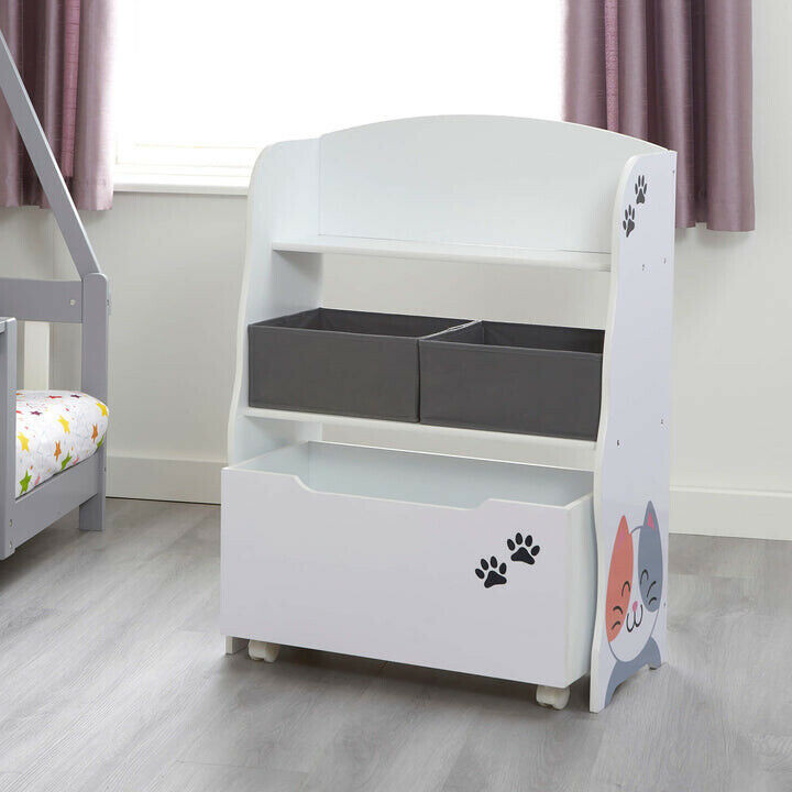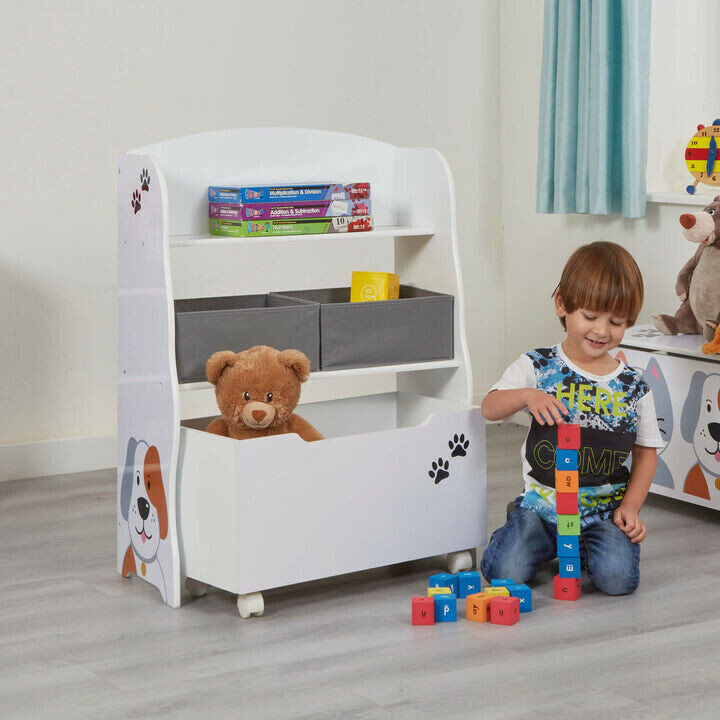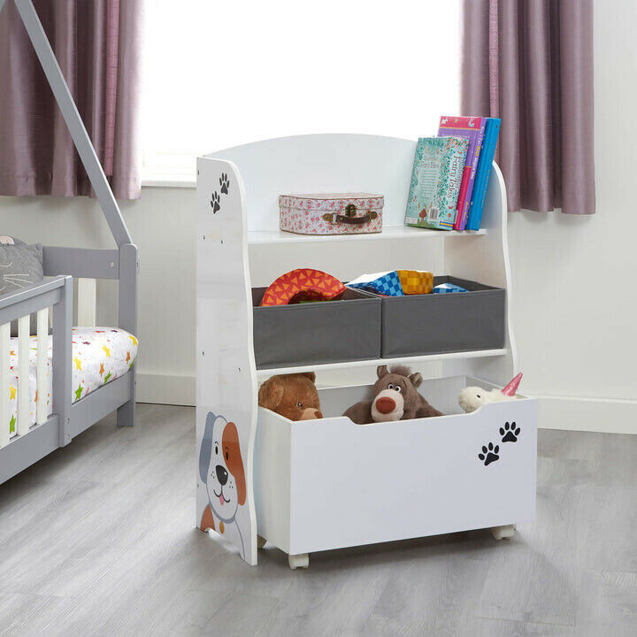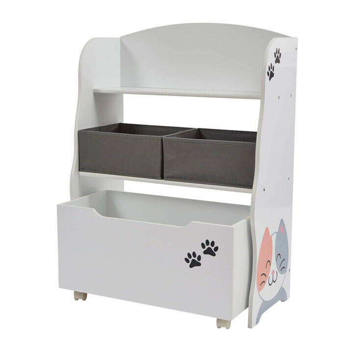 Kinder Opbergmeubel met Katten en Honden – Inclusief Uittrekbare Speelgoeddoos en Stoffen Opbergbakken – Praktisch en Speels Ontwerp