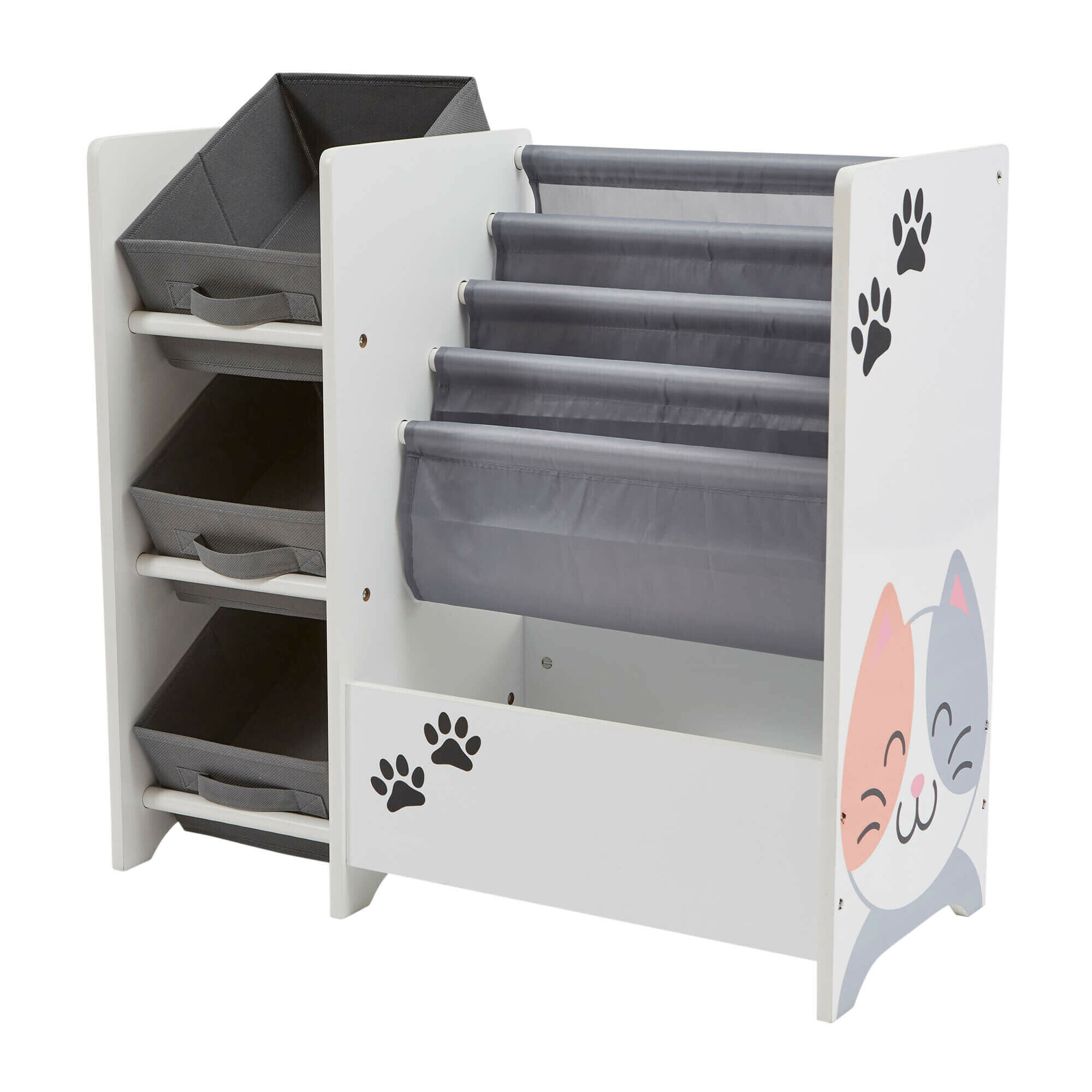 Kinderboekenkast Katten en Honden met 3 Stoffen Opbergdozen