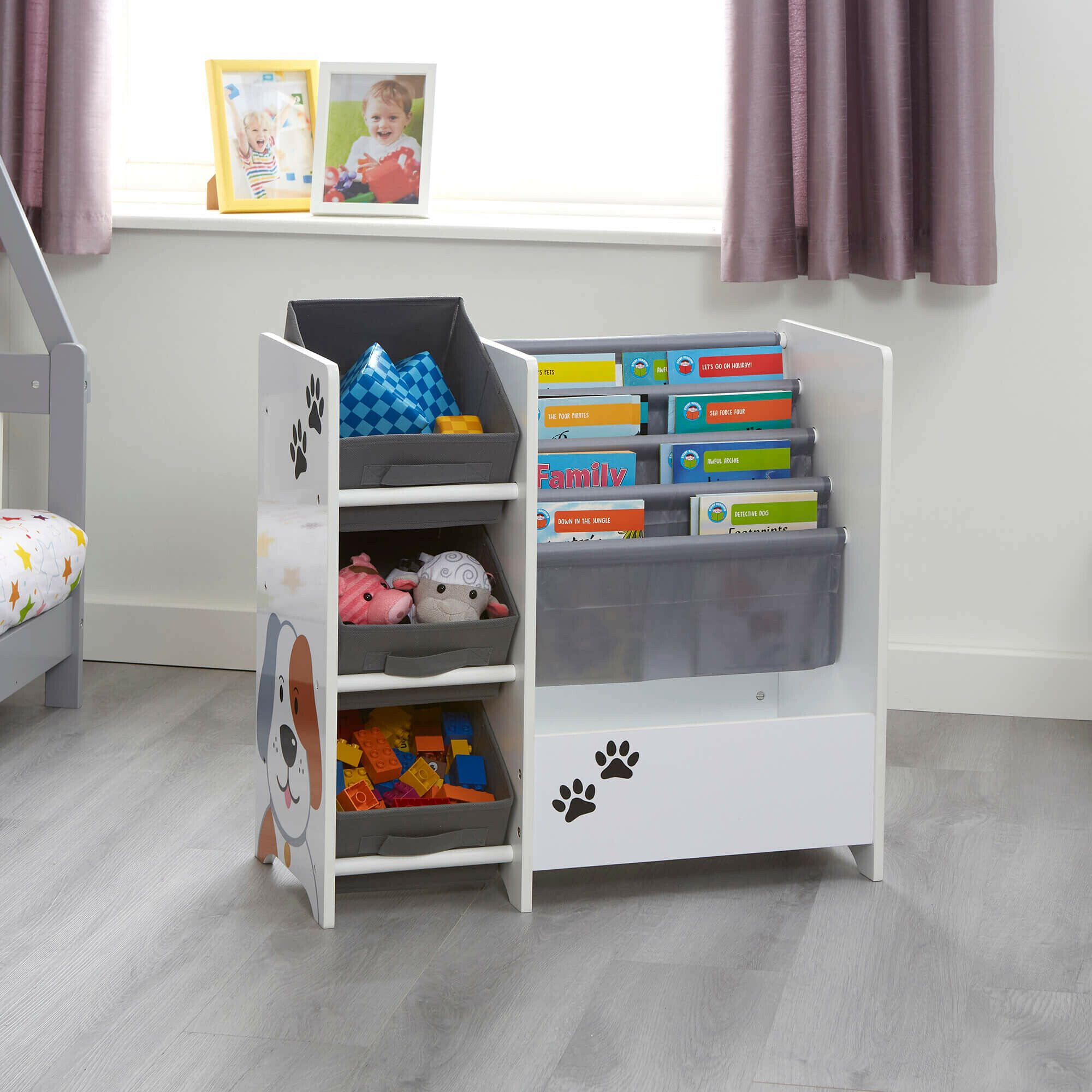 Kinderboekenkast katten en honden met 3 stoffen opbergdozen