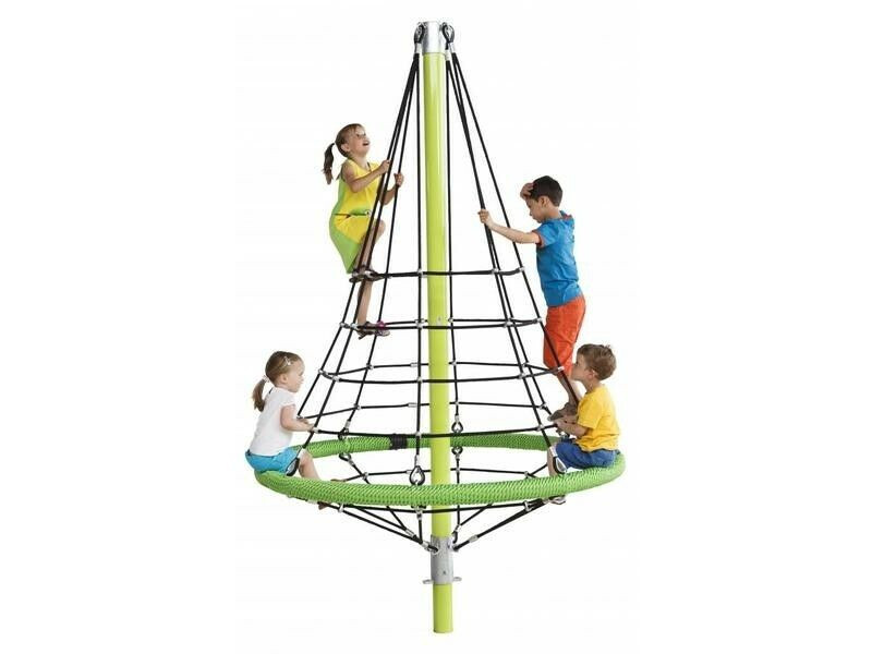 Het klimnet ‘firry’ van KBT is een uniek ontwerp dat verkrijgbaar is in andere touwkleuren. Het anker is inbegrepen en moet in beton geplaatst worden. De valhoogte is de hoogte van het laagste touw (<1m). De constructie draait niet. Productkenmerken: Gepoedercoate paal met warm gegalvaniseerde afdekdop. Vervaardigd uit stevig gewapend touw van Ø 16 mm. Met aluminium verbindingsstukken. Te plaatsen in beton. Gewicht 82 kg Vrije ruimte 6 x 6 meter (ruimte waarbinnen het toestel geplaatst dient te worden).