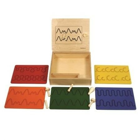 - Educatieve houten set: Bevat 5 houten schrijfborden met verschillende patronen, ideaal om schrijfbewegingen te oefenen.