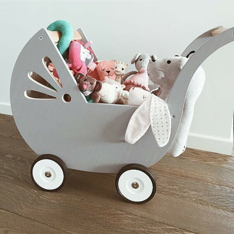 Met zijn zachte grijze kleur en verfijnde ontwerp past deze poppenwagen in elke kinderkamer als een decoratief element. Kinderen kunnen hun favoriete poppen of knuffels meenemen, terwijl ze hun motorische vaardigheden, balans en verbeelding ontwikkelen.