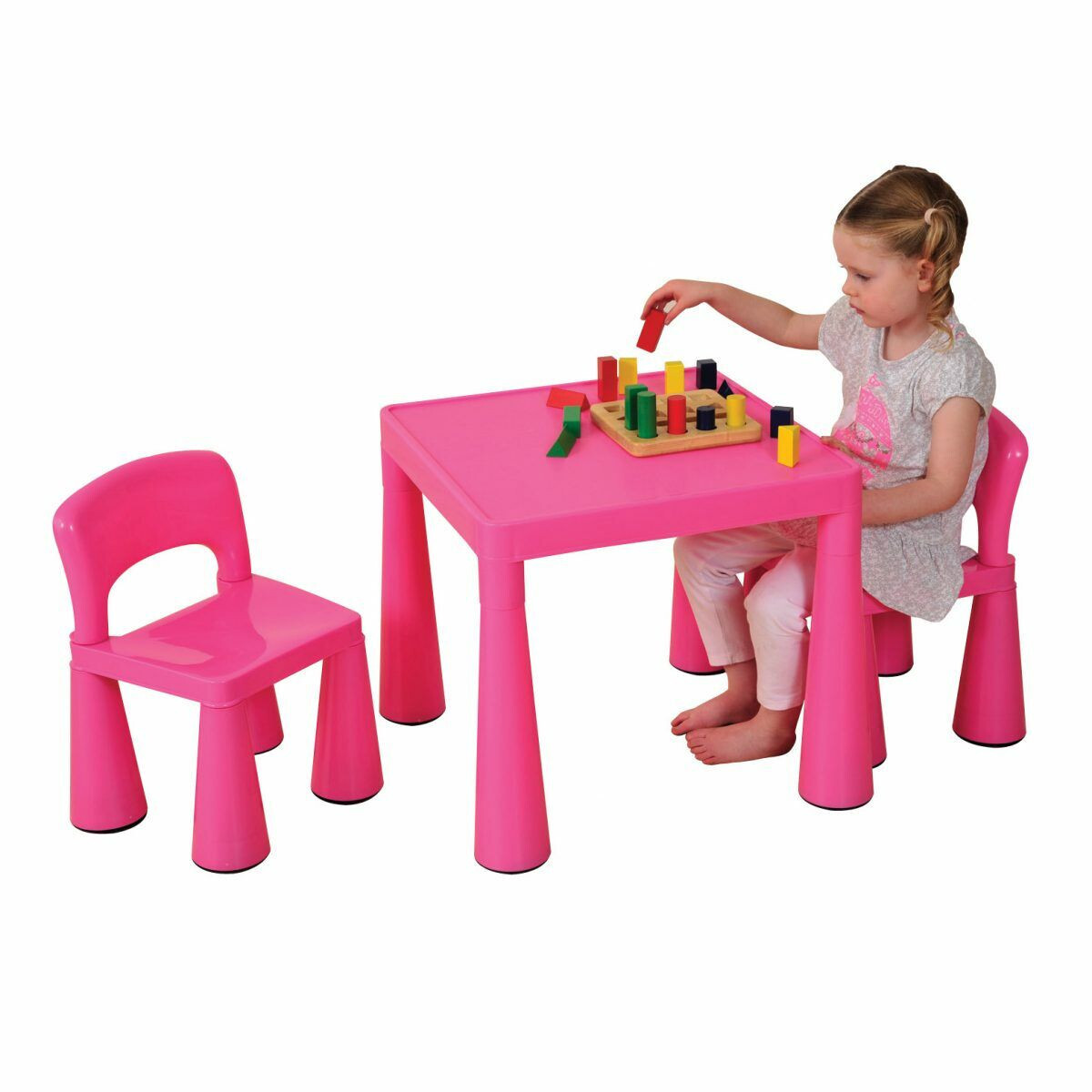 Deze sfeervol ontworpen tafel en stoelen set is ideaal voor jonge kinderen om op te zitten en te genieten van spel-, en knutselactiviteiten, of geniet van een picknick in de tuin. Tafels zijn lichtgewicht maar stevig en kunnen gemakkelijk van kamer naar kamer of naar de tuin worden verplaatst. Plat verpakt geleverd voor eenvoudige montage.