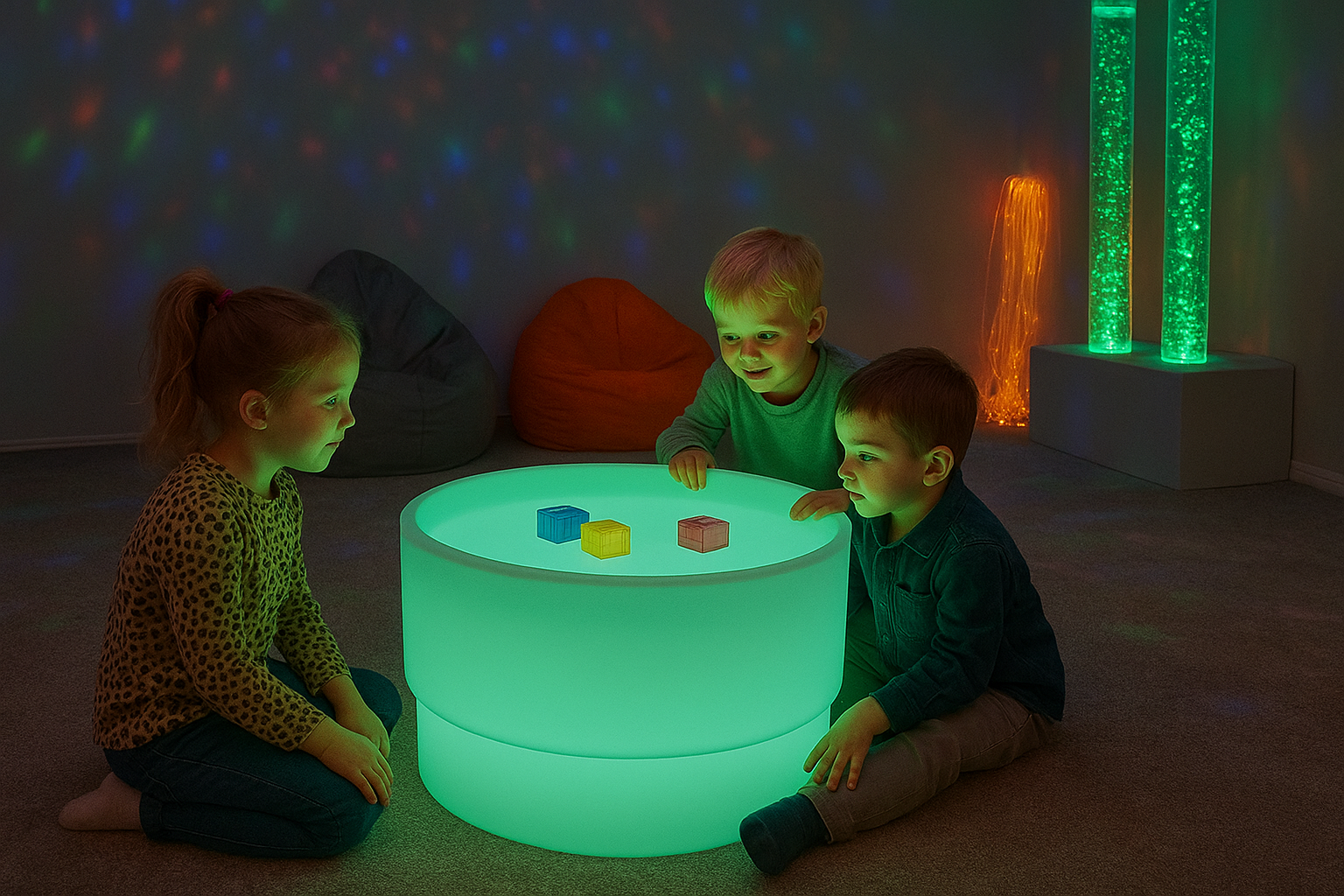 Ontdek eindeloos speel- en leerplezier met de Sensorische Stemmingsontdekkingstafel, een van kleur veranderende LED-ontdektafel voor kinderen. Het verhoogde randontwerp biedt een veilige en uitnodigende ruimte om sensorische verkenning, creativiteit en motorische vaardigheden te stimuleren.