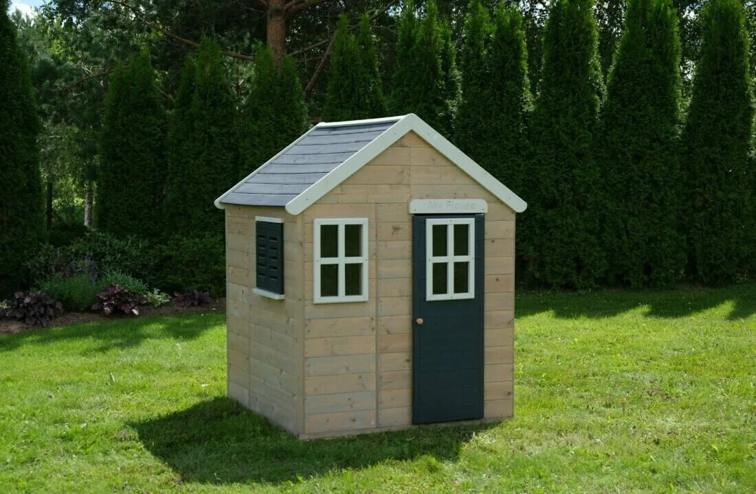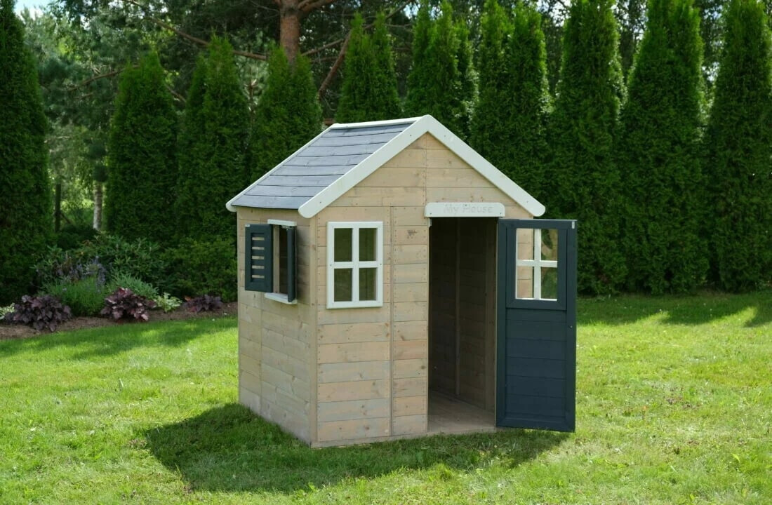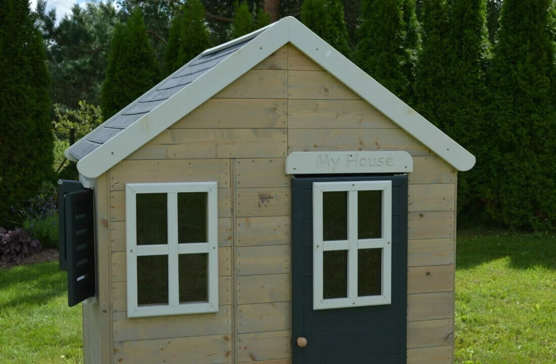 Het speelhuis is gemaakt van hoogwaardig FSC-gecertificeerd hout en is duurzaam en heeft een zeer stabiele structuur. De veiligheid van uw kinderen wordt gegarandeerd door de hoogwaardige afwerking en de afgeronde hoeken. Dit speelhuis voor kinderen heeft voorgemonteerde en versterkte houten panelen die voorkomen dat het verslechtert en de montagetijd verkort. Speelhuis is niet geschikt voor kinderen onder de 3 jaar! Het wordt aanbevolen om het huis jaarlijks opnieuw te schilderen om het er spiksplinternieuw uit te laten zien.