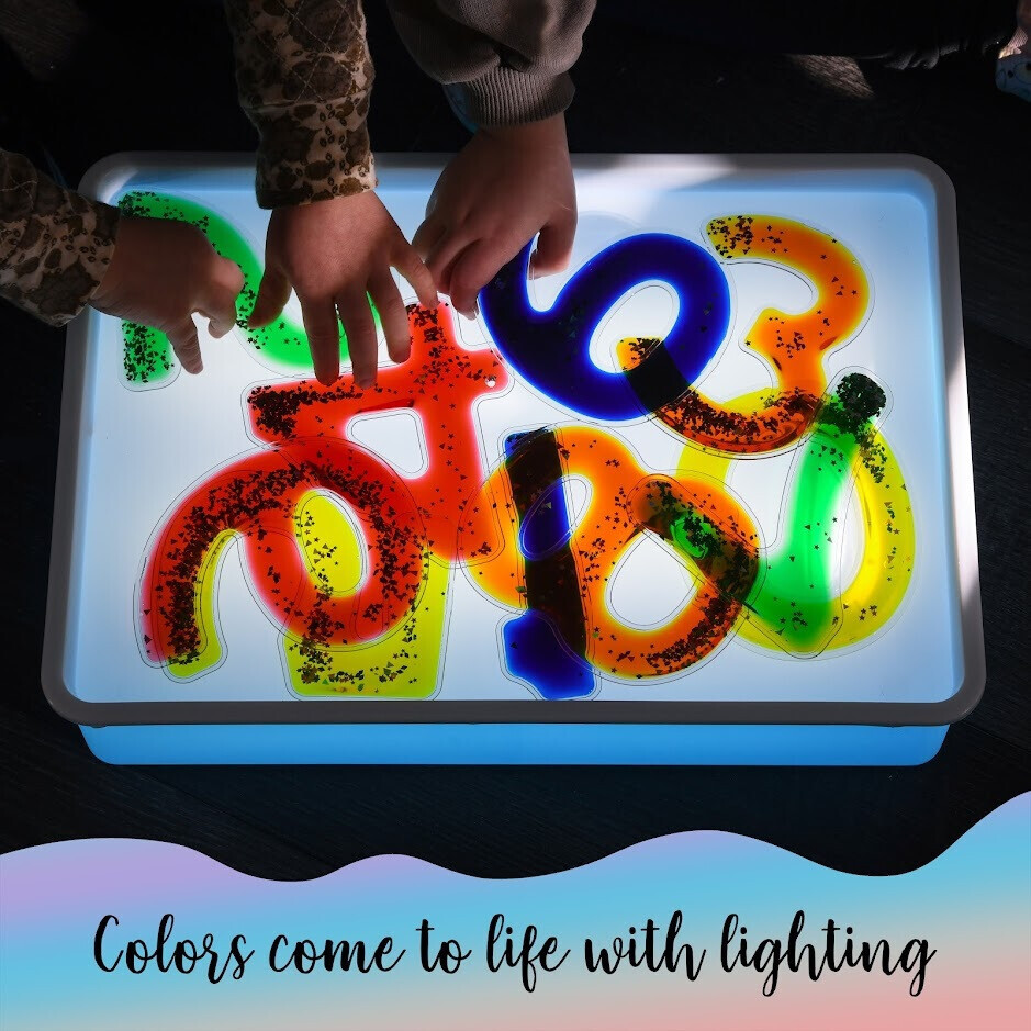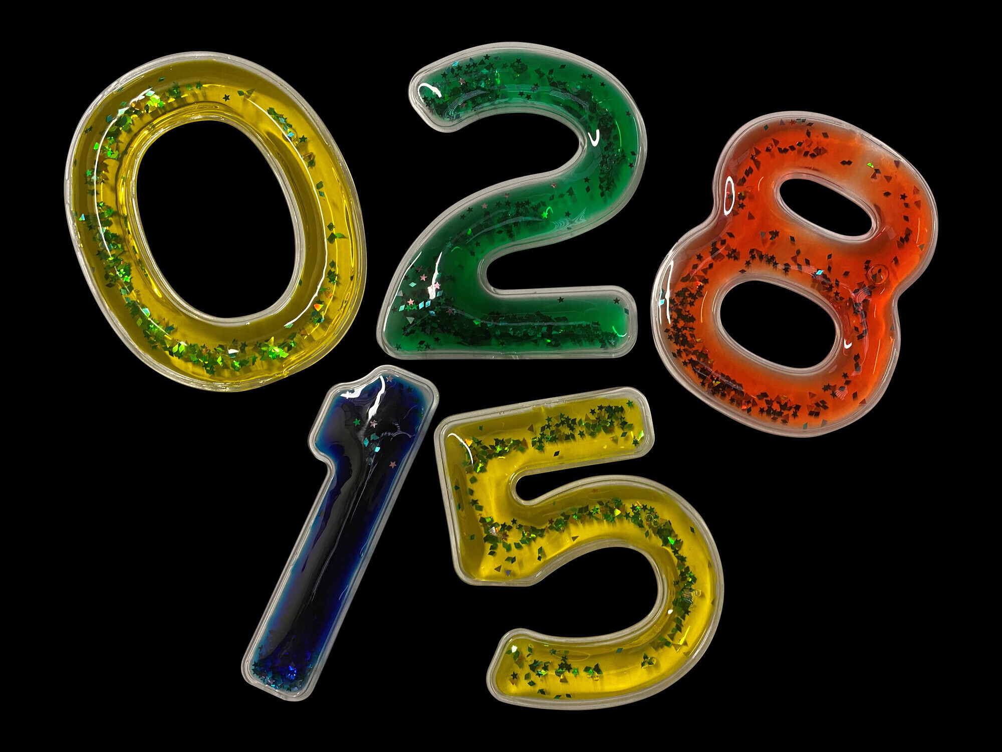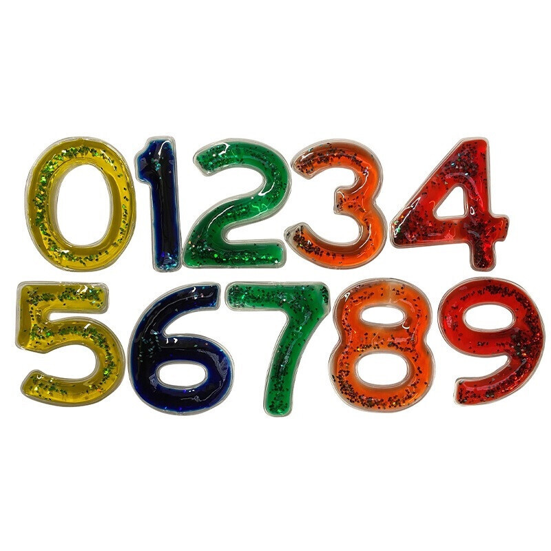Deze zachte, glinsterende cijfers zijn gemaakt van transparant vacuümgevormd plastic, gevuld met kleurrijke, fonkelende vloeibare gel. Kinderen kunnen ze knijpen, buigen, indrukken of gebruiken als sjabloon – perfect voor creatief, educatief en sensorisch spel.