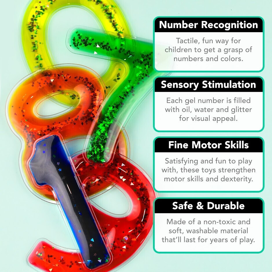 Elk cijfer biedt een multi-sensorische ervaring, waardoor kinderen spelenderwijs kennismaken met vormen, kleuren en getallen. De glitter en vloeistof bewegen bij aanraking, wat helpt om de hand-oogcoördinatie, concentratie en fijne motoriek te ontwikkelen.