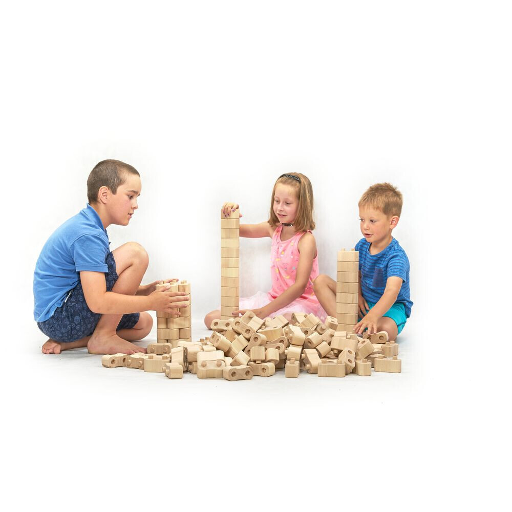 Met Steck Blokken JUNIOR kunnen zelfs de jongste kinderen hun verbeelding de vrije loop laten. Dankzij de afgeronde uiteinden en dubbele ronde pinnen kunnen de blokken onder elke hoek worden verbonden, wat eindeloze bouw- en speelopties biedt!