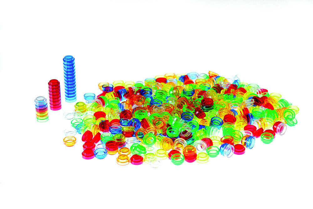Met de Transparante Stapelbare Tel-Toren (500 stuks) ontdekken kinderen de basis van getallen, hoeveelheden en reeksen. De kleurrijke telstenen kunnen niet alleen worden gebruikt om torens te stapelen, maar ook om te sorteren, te tellen en patronen te maken. Zo wordt rekenen een leuke en interactieve ervaring.