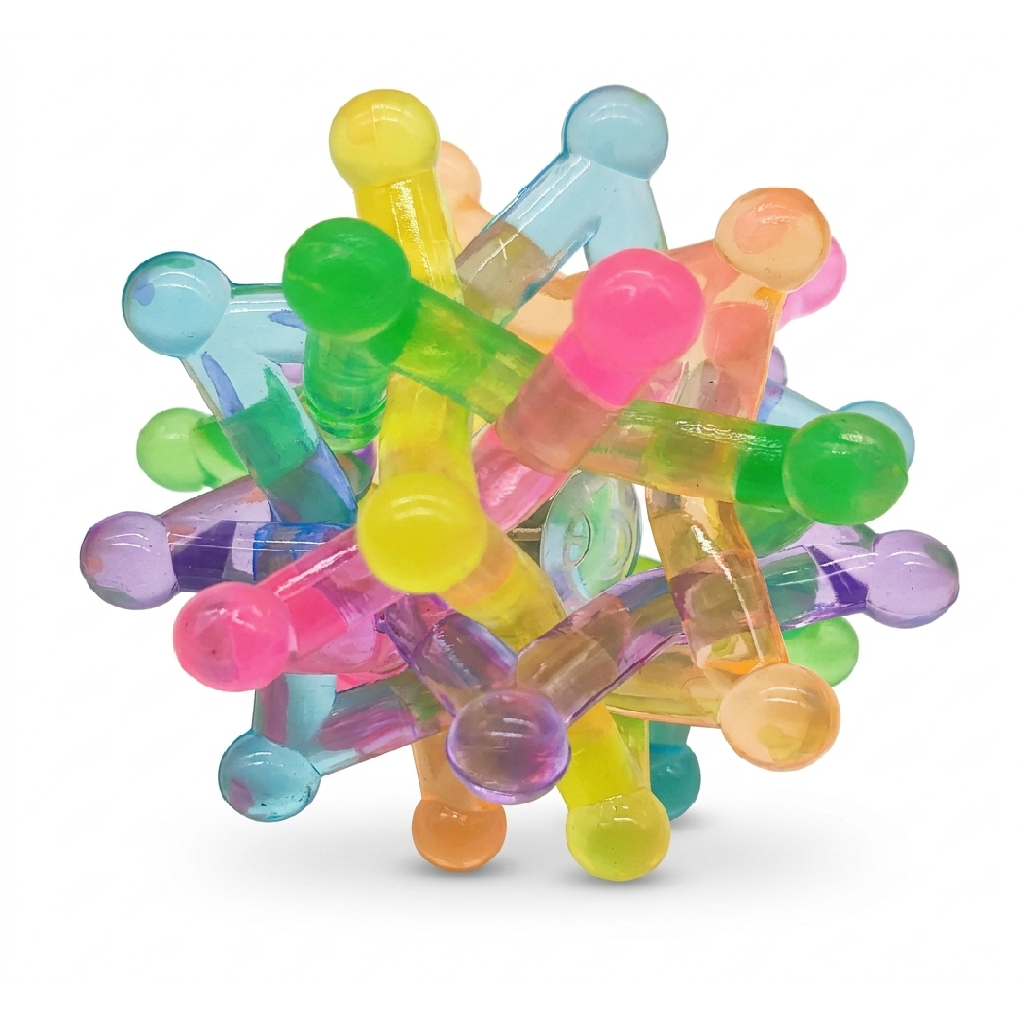 De UV Knopenbal combineert zacht siliconen met dynamische lichteffecten. De unieke structuur van stervormige strengen nodigt uit tot kneden, gooien en ontdekken, terwijl het geïntegreerde LED-lampje bij elke aanraking oplicht.