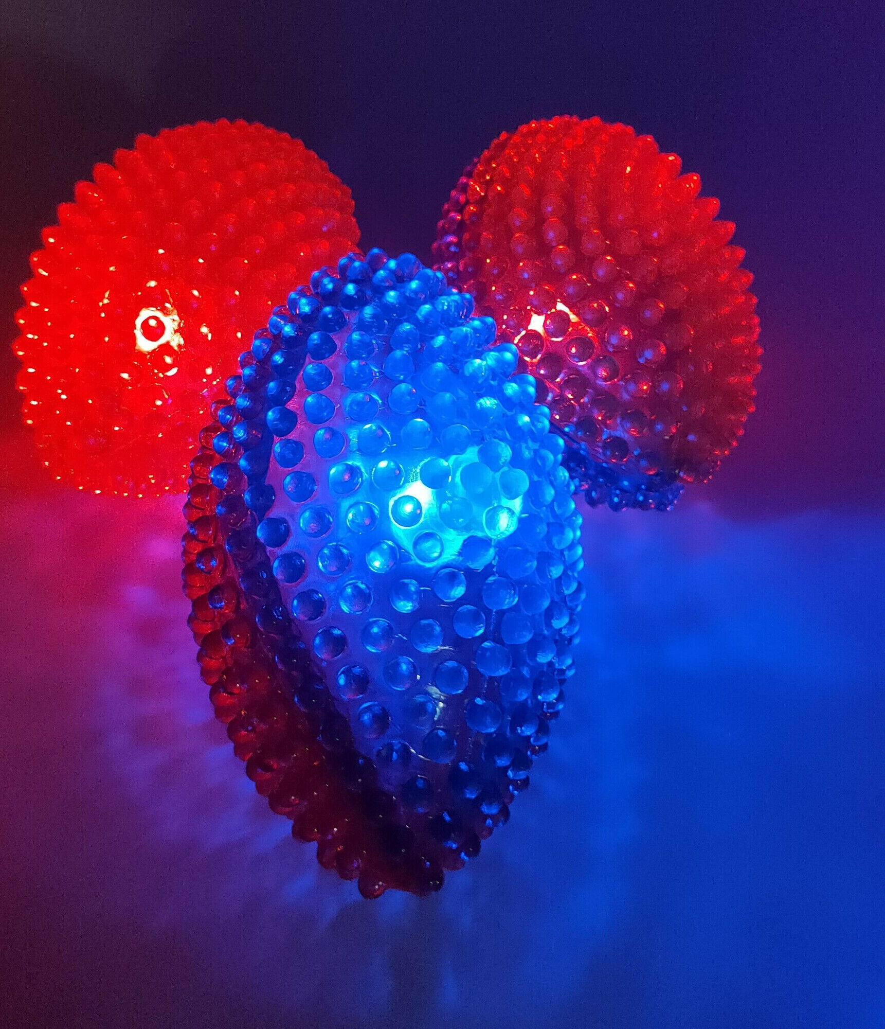 Sensory Kit - 3 geribbelde oplichtende rugbyballen