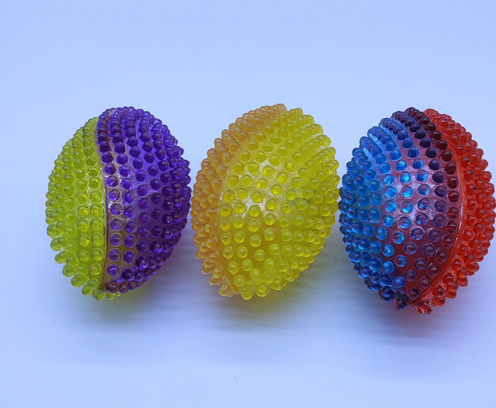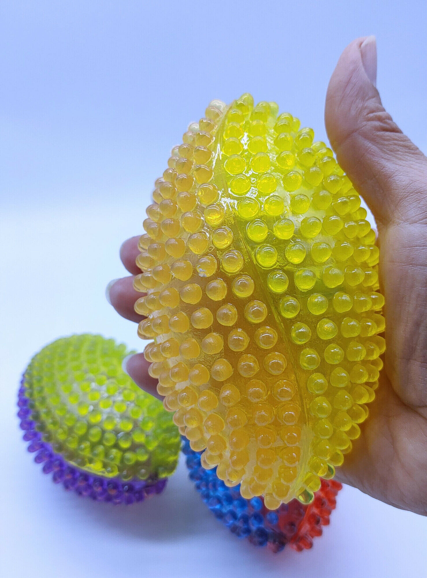 Volwassenen en kinderen zullen dol zijn op deze unieke getextureerde ballen die op zoveel manieren kunnen worden gebruikt om de zintuigen te versterken. Onze sensorische ballen zijn zacht en stimulerend en verbeteren de grove motoriek en tactiele vaardigheden , stimuleren het kruipen en de coördinatie bij jongeren, en oefenen en zintuiglijke stimulatie bij alle andere leeftijden. Licht op bij impact.