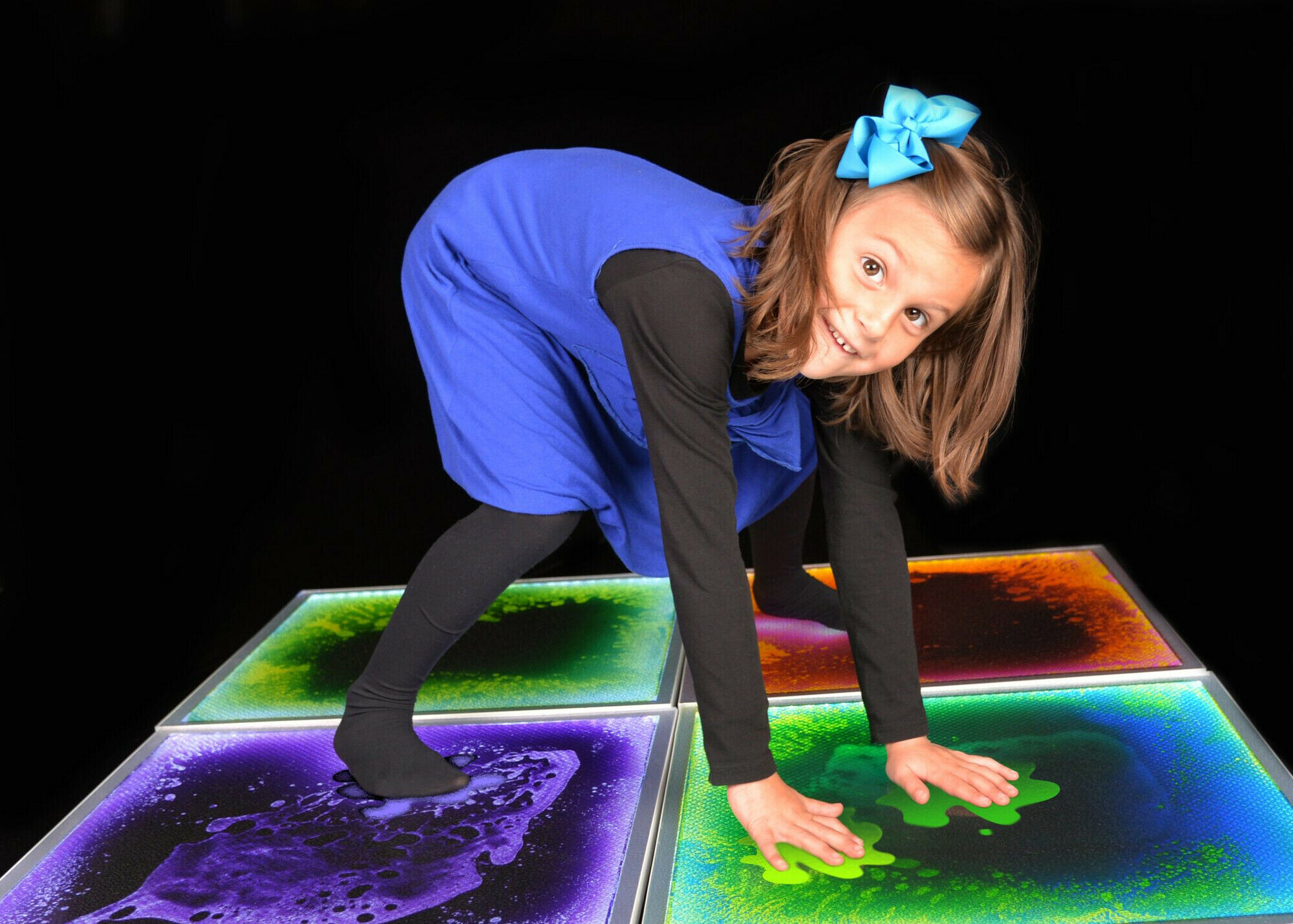 Een prachtige visuele en tactiele lichtervaring die je echt zal aanmoedigen om te bewegen en de oppervlakken te verkennen. Elke tegel met achtergrondverlichting is gevuld met een vloeibare gel. Elke stap of beweging zorgt ervoor dat de vloeibare gel in een reeks patronen verschuift. Moedigt visuele stimulatie aan, evenals beweging en aanraking. Elke tegel is gevuld met een vloeibare gel, zodat elke stap of beweging ervoor zorgt dat de vloeibare gel in een reeks patronen verschuift.