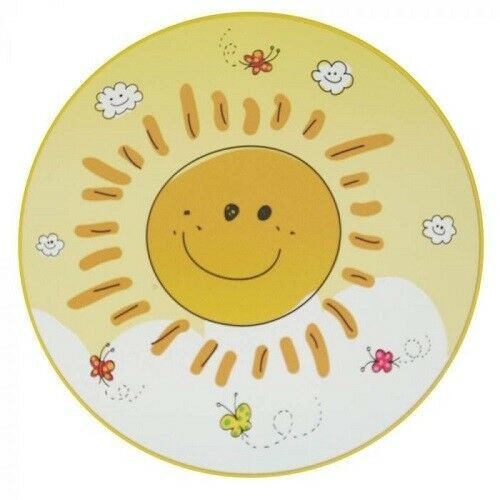 Sunny is een kunststof kinder wandlamp met een schakelaar op het snoer. De lamp heeft een diameter van 25cm en is voorzien van een E14 fitting.