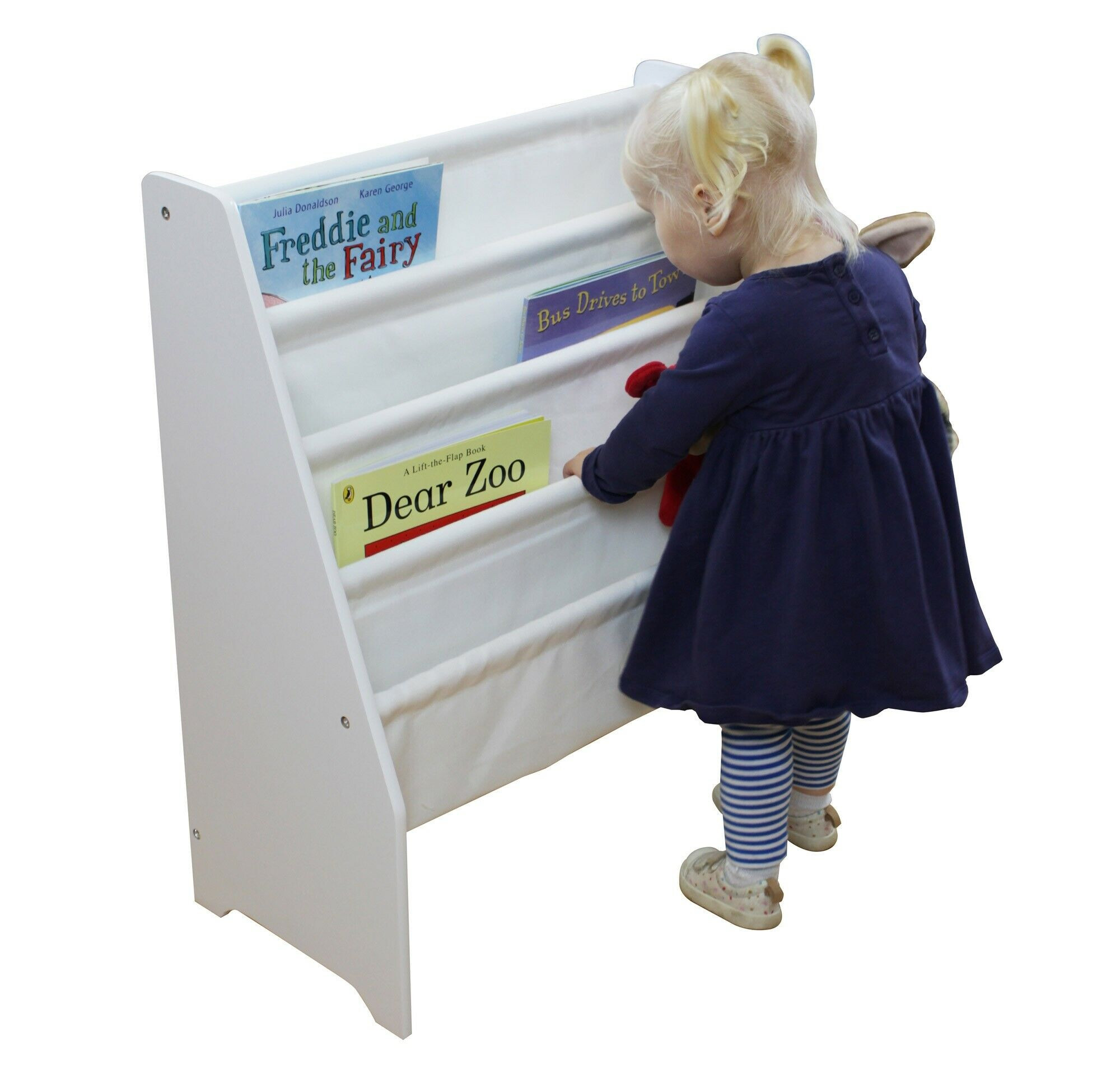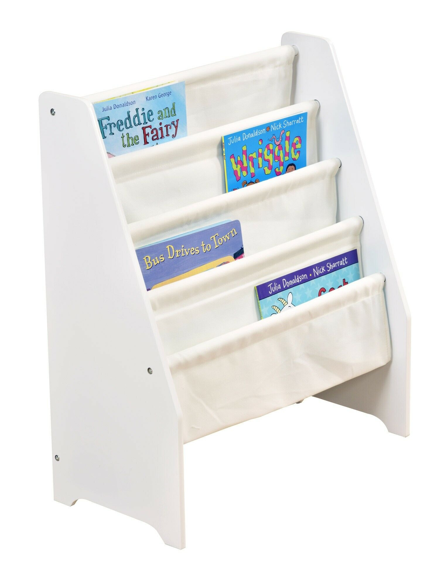 De witte houten boekenkast met 4 stevige canvaszakken is perfect voor uw kind om al zijn favoriete boeken op te bergen. Wordt plat verpakt geleverd. Vereist volwassen montage. P>